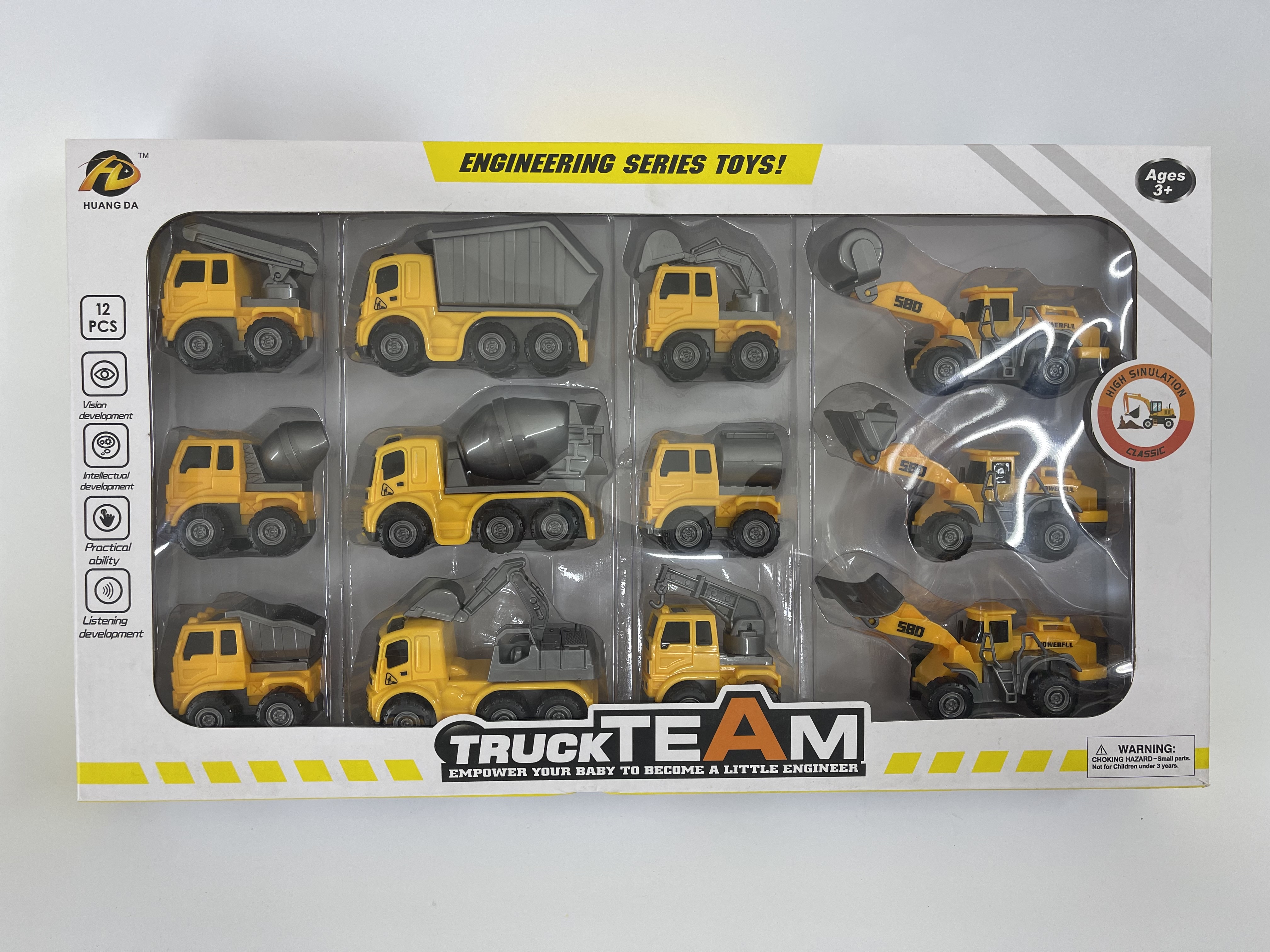 Sada 12 ks těžkých stavebních strojů pro malé inženýry a stavebníky.