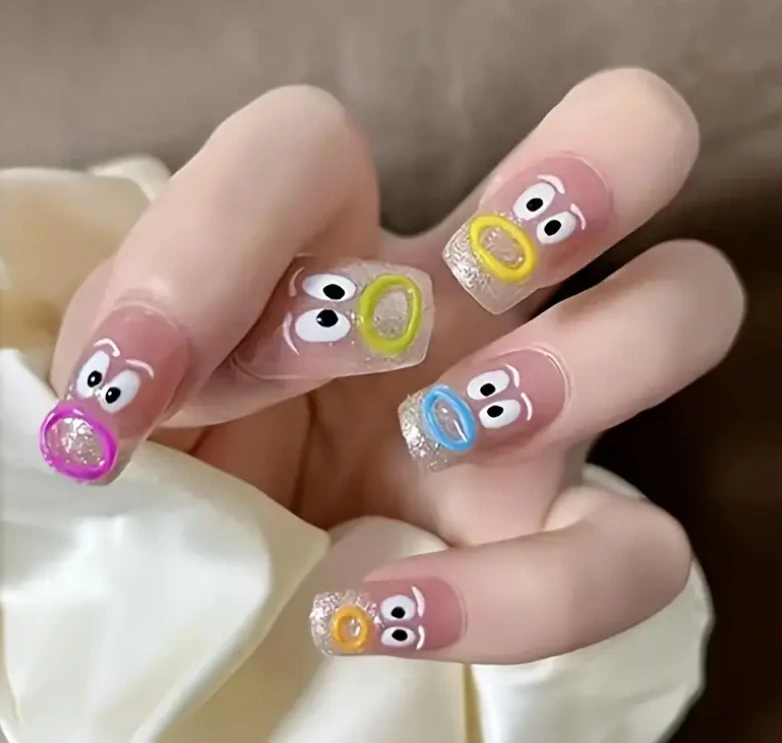 72 lesklých samolepek s motivem úst a očí na zdobení nehtů.