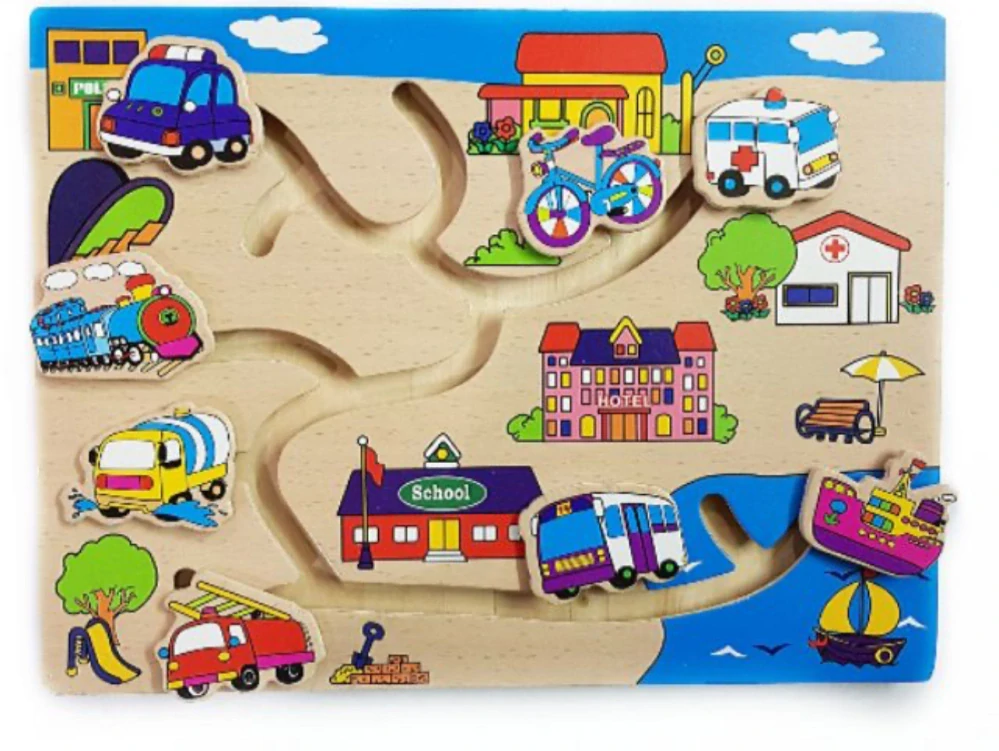- Dřevěný motorický labyrint- dopravní prostředky, hlavolam