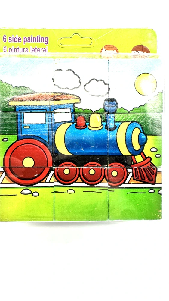 Z 9ti kostek může vaše dítě sestavit 6 různých obrázků- letadlo, plachetnici, auto, motorku, autobus a lokomotivu.
