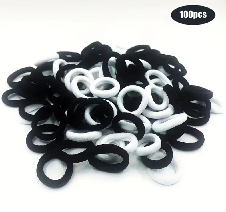 - Elastické gumičky do vlasů, černé a bílé, 100 ks