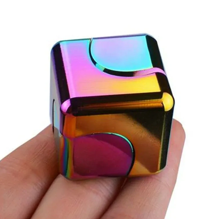 Fidget Spinner Cube Rainbow- rotující kovová kostka v duhové barvě.