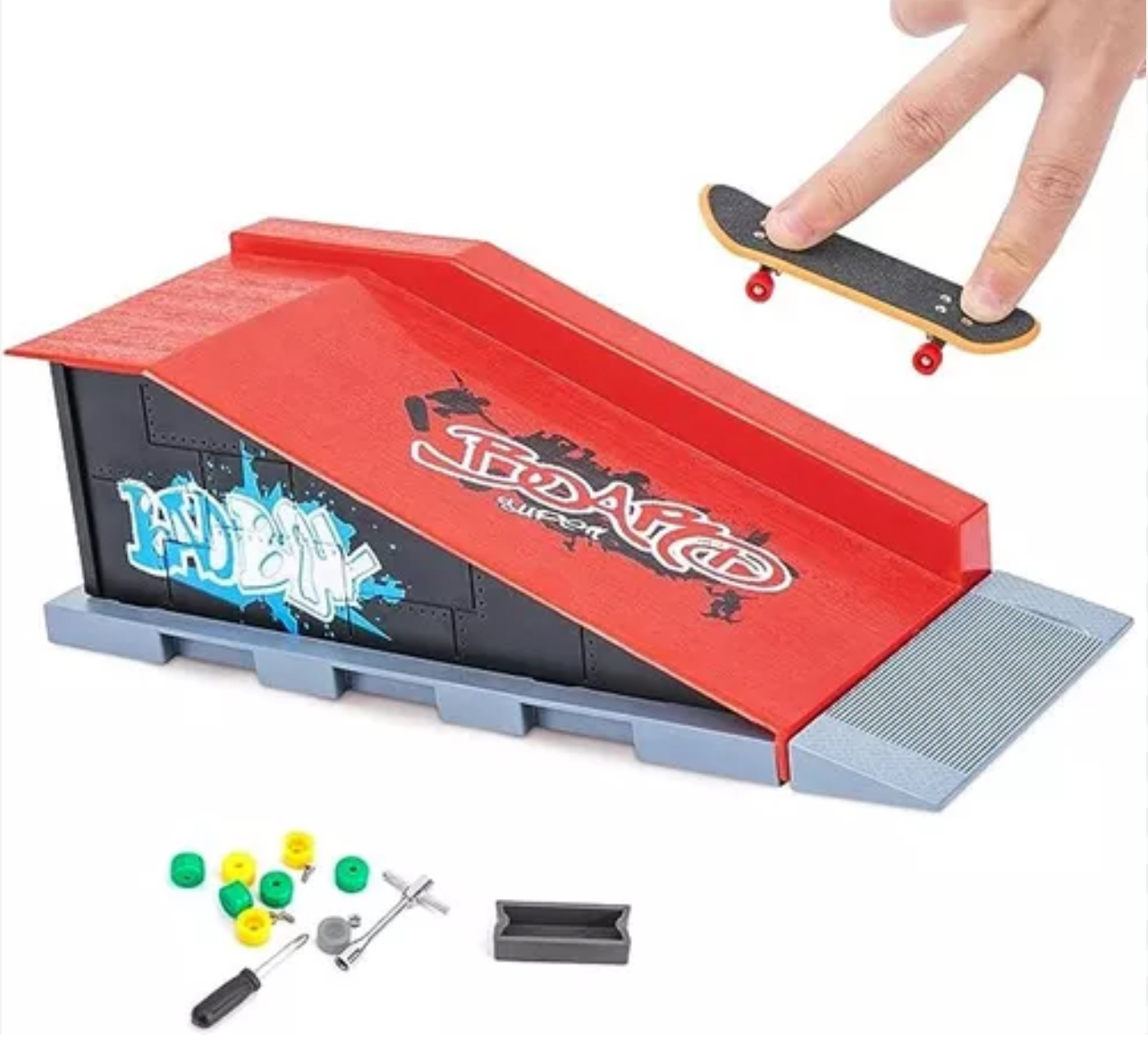 Mini-skateboard park B s příslušenstvím pro vaše prsty.