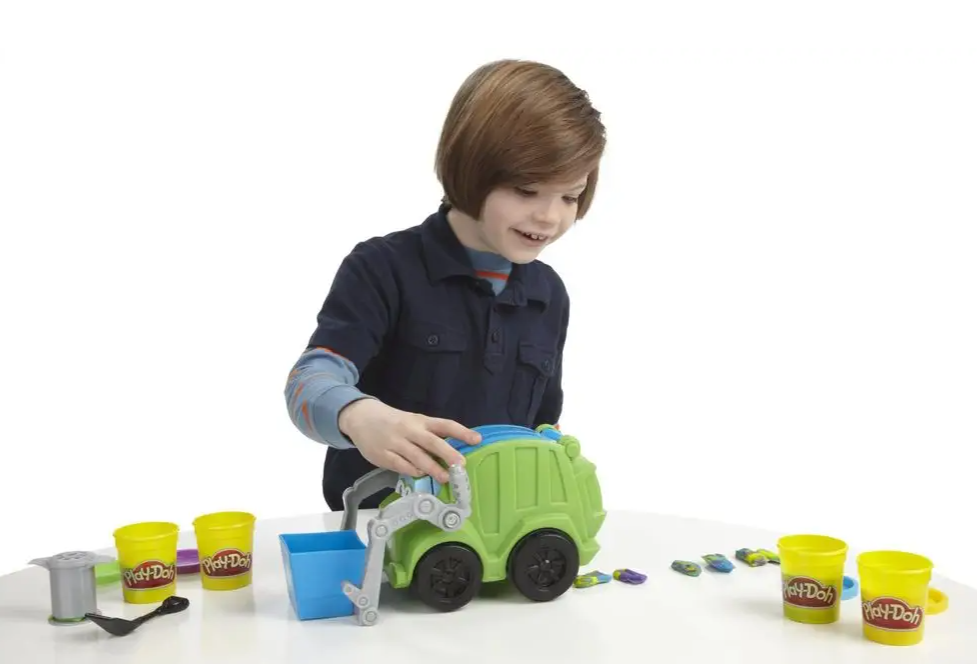 Kreativní sada modelíny Play-Doh, se kterou se mohou děti pustit do tvarování odpadků a pytlů na odpad, poté si zahrát na odvoz a recyklaci odpadu.