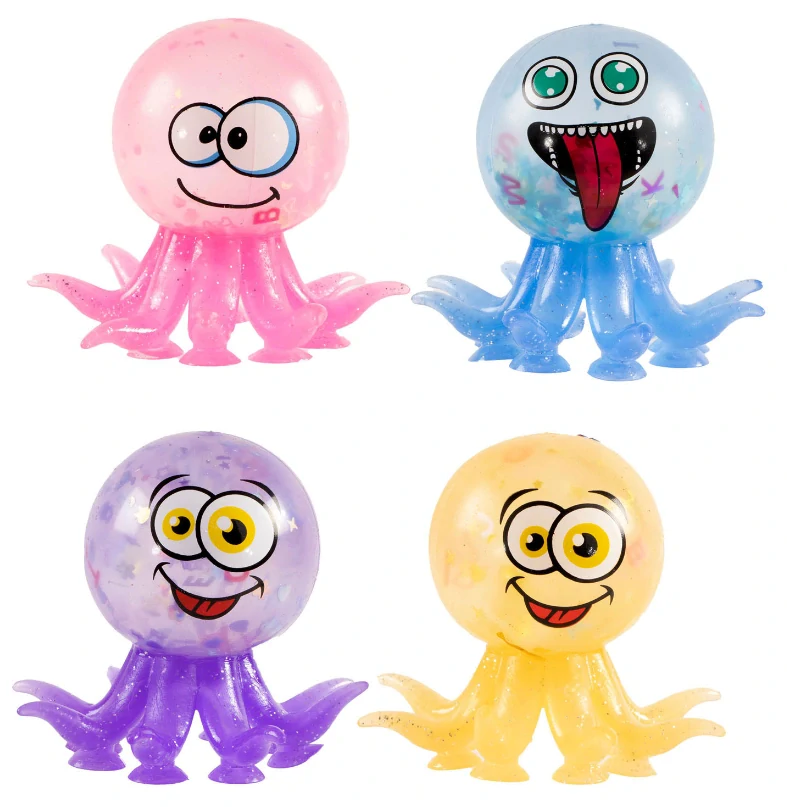 Mačkací plastová chobotnice s přísavkami pro snižování napětí a nervozity.
