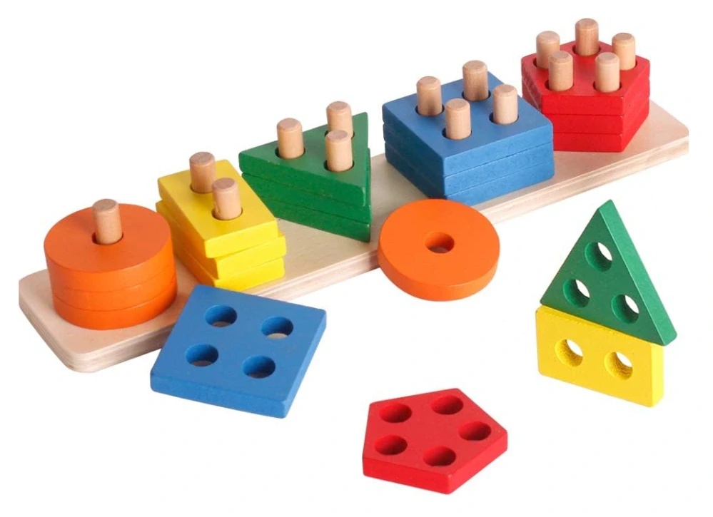 Každý tvar má totiž jiný počet otvorů, např. kruh má jeden, čtverec čtyři, pětiúhelník pět atd. Děti musí třídit části podle barev, tvarů a navíc i podle počtu otvorů v daném tvaru. Při skládání si děti procvičí jemnou motoriku, koordinaci oko-ruka, logiku a v neposlední řadě také barvičky. Základní tvary na desce jsou vyrobené ze dřeva, použité barvy a laky jsou nezávadné.