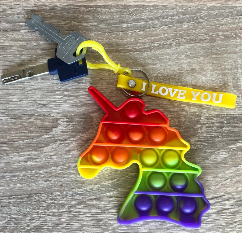 Pop It- klíčenka s poutkem Rainbow Jednorožec