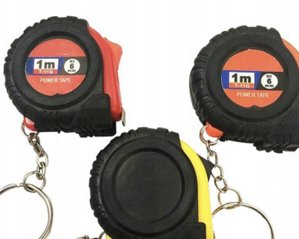 Klíčenka, přívěsek s funkčním svinovacím metrem o délce 1 metr.