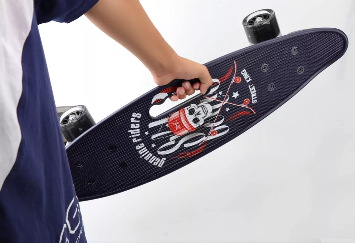 Povrch skateboardu je vyroben z PP polypropylenové fólie, která zaručuje bezpečnost, stejně jako odolnost proti nárazům.