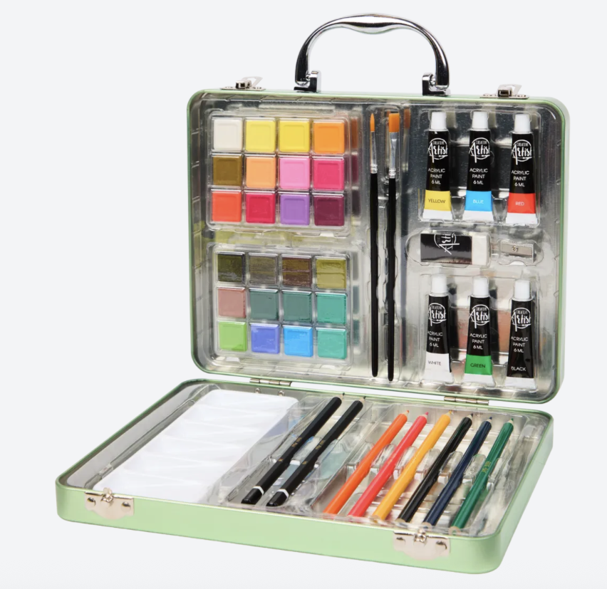 Kompletní výtvarná sada ARTIST v praktickém uzavíratelném kovovém kufříku je ideální volbou pro malé i velké umělce. Obsahuje vše potřebné pro malování akrylovými barvami, akvarelovými barvami i kreslení pastelkami a tužkami. Díky pevnému kufříku je vše přehledně uspořádáno a snadno přenosné.
