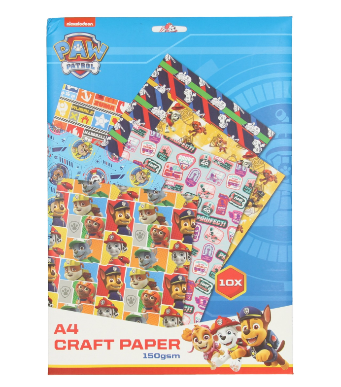 Sada s 10 listy řemeslného papíru PAW Patrol (150 gramů) ve formátu A4.